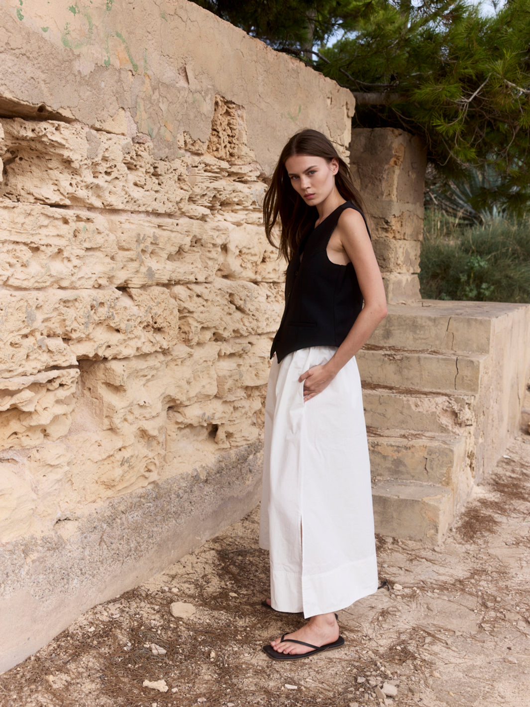 Sie ist hat eine schmale Silhouette und einen klassischen Westen Schnitt. Egal ob mit Tanktop, Shirt oder pur getragen, sie bietet dir viele Möglichkeiten - spannende Stylings zu kreieren!