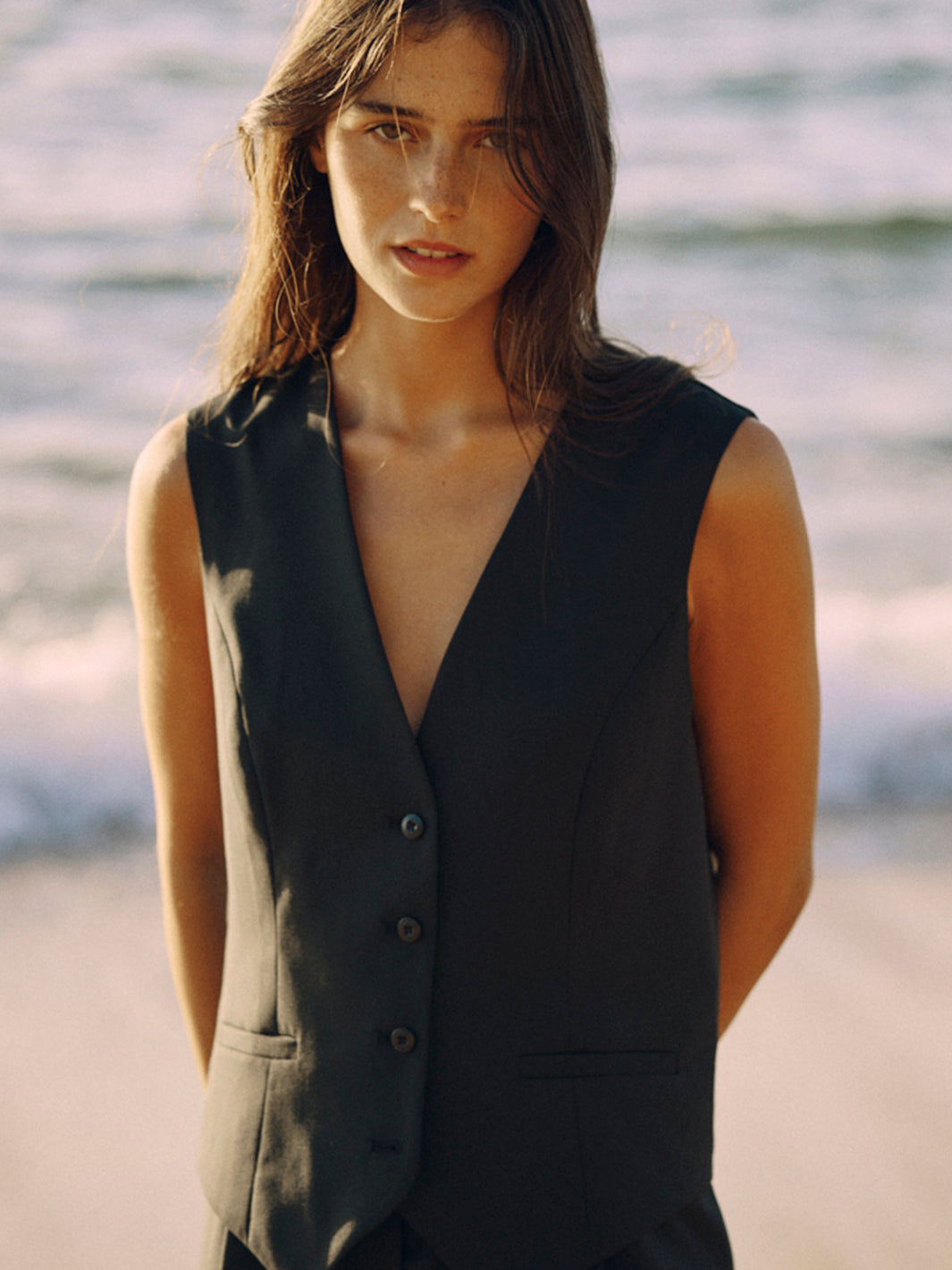 • Schmale, moderne Silhouette – klassischer Westenschnitt
