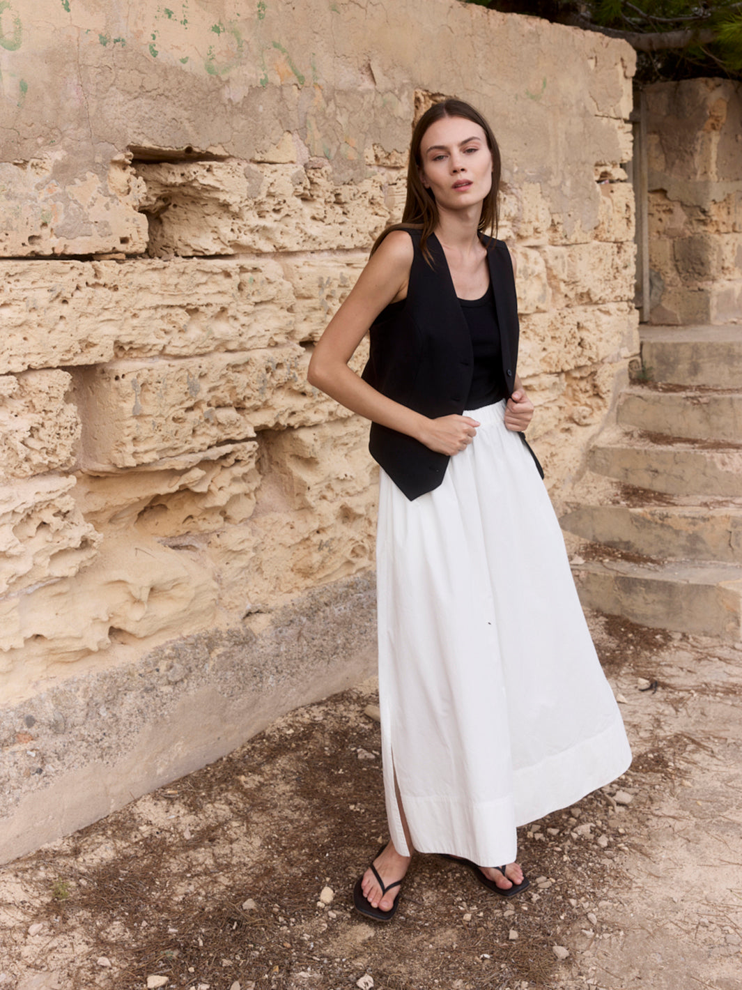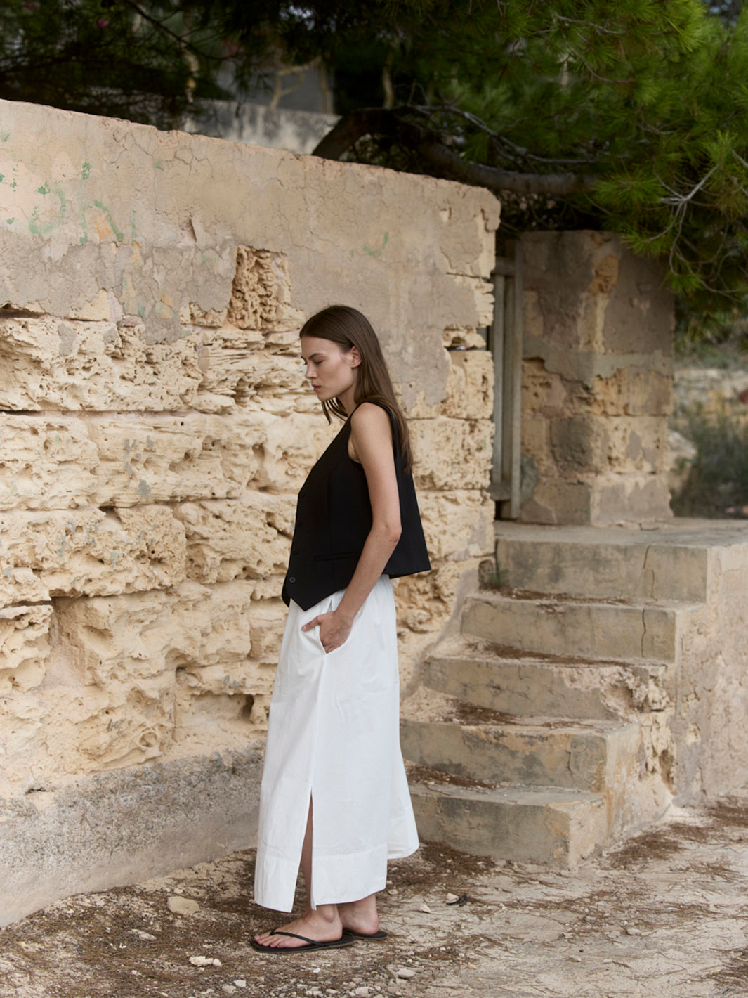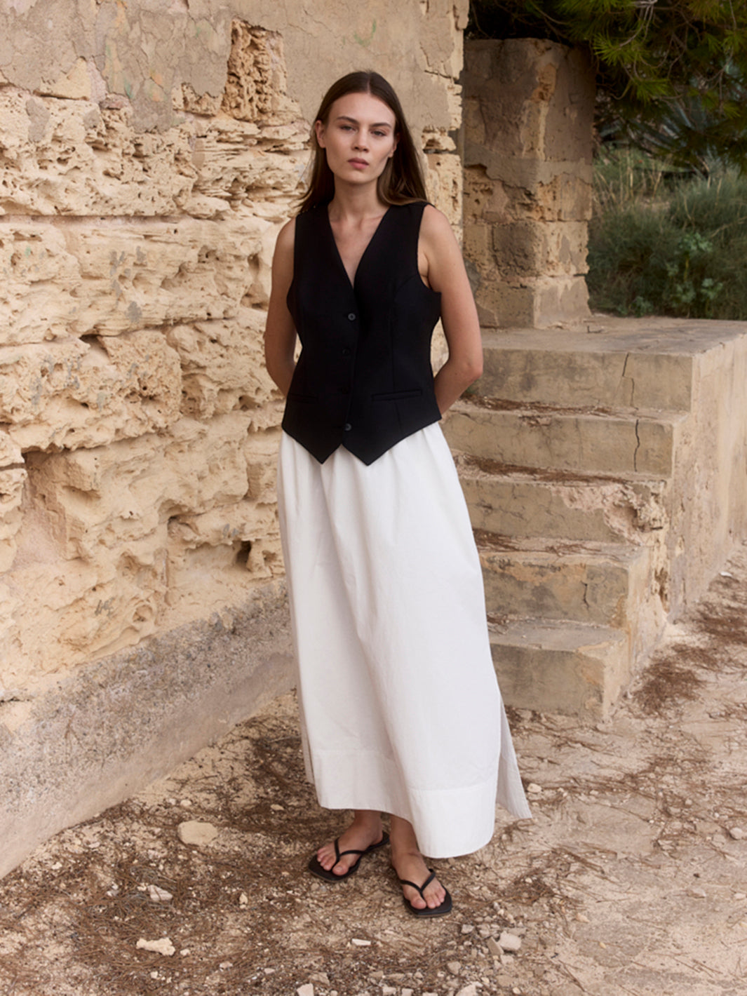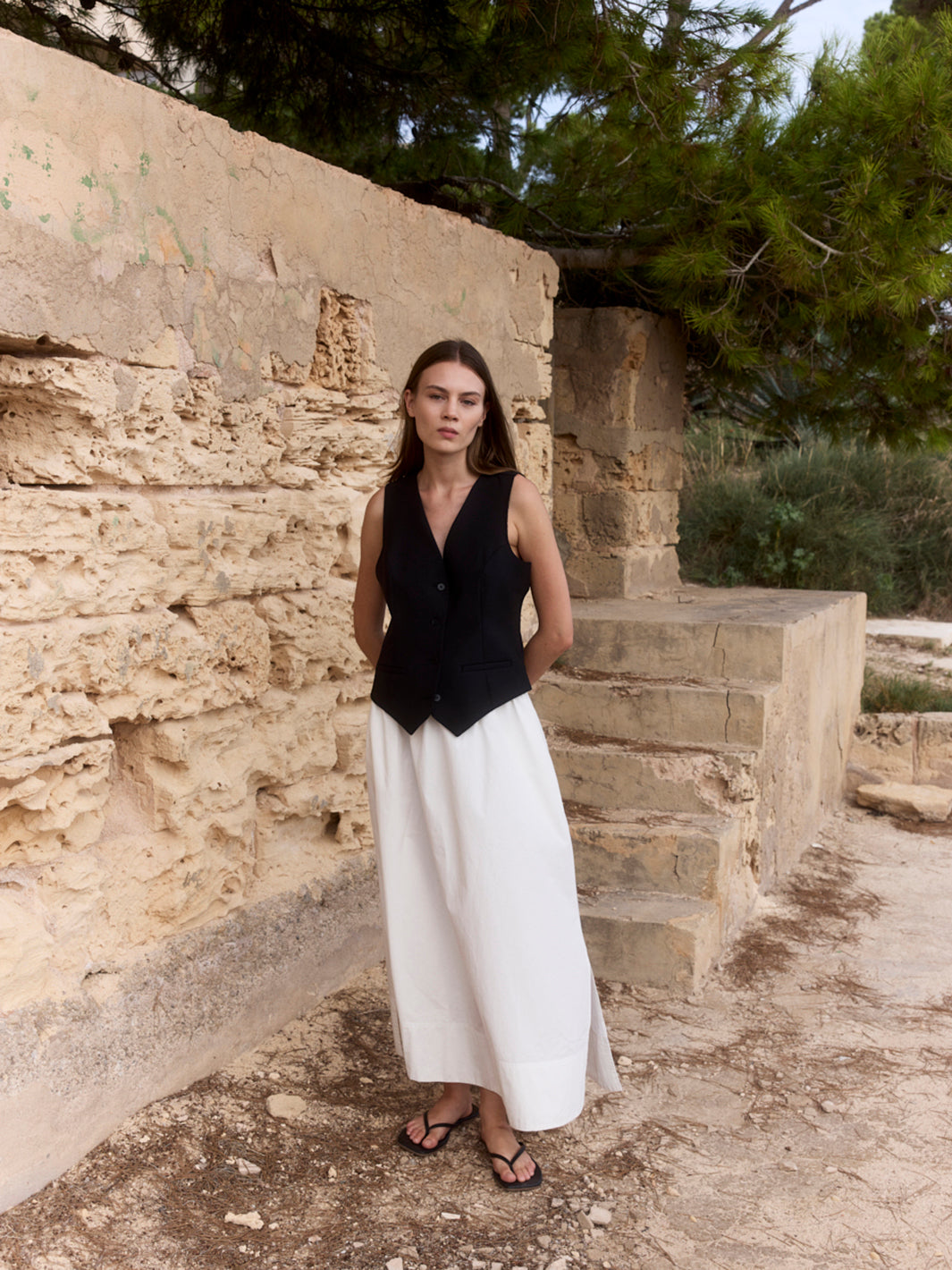 Ob zur Bermuda, unseren Wool Pants oder zum Midi Rock: Diese Weste lässt sich unglaublich vielseitig stylen. Pur getragen, mit Tanktop oder mit T-Shirt entsteht im Handumdrehen ein smarter, cooler oder femininer Look.