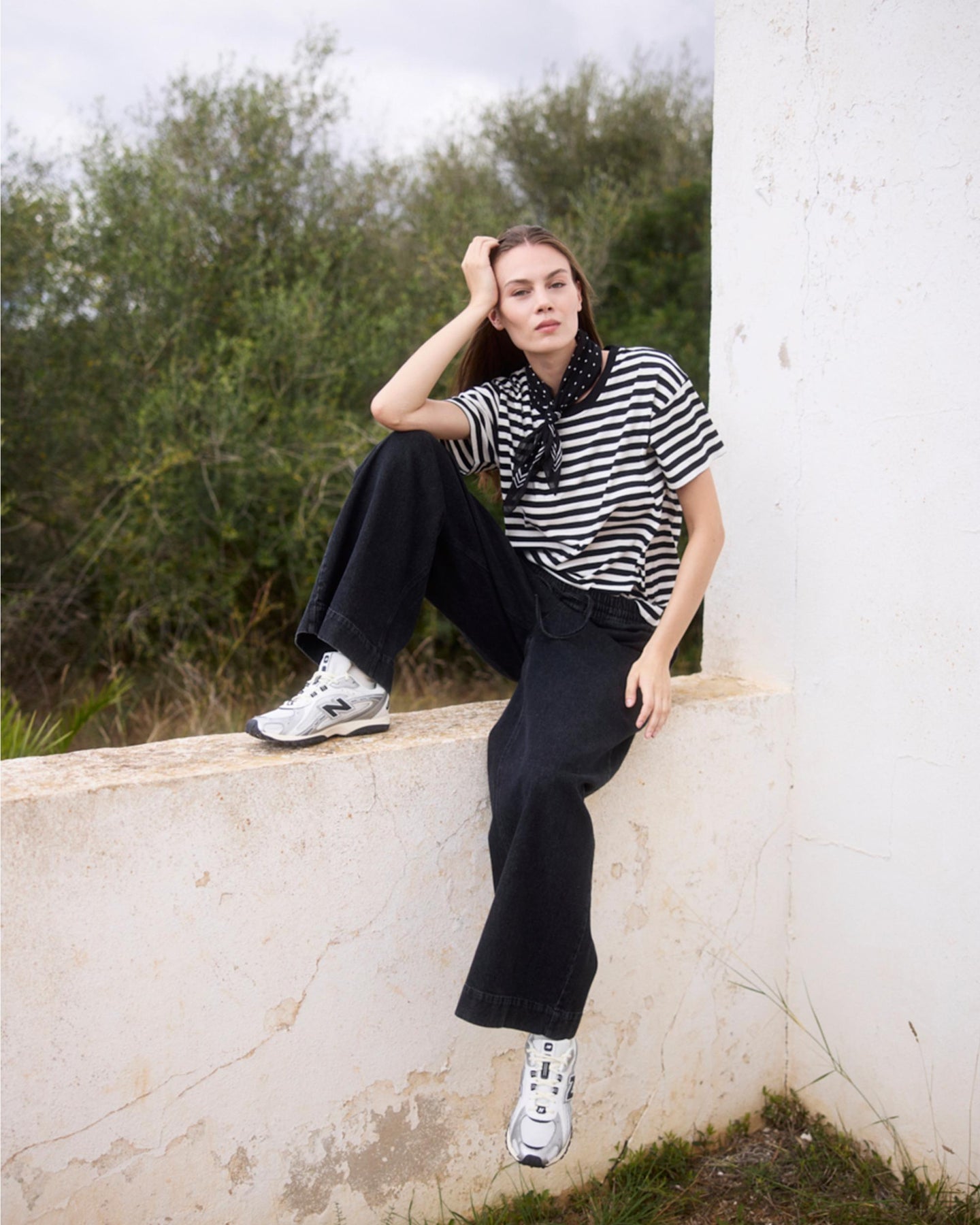 Der weit geschnittene, leicht verlängerte Fit erinnert an Tailoring-Silhouetten – relaxed und dennoch elegant. Ob mit T-Shirt, Strick oder im angesagten „Denim-on-Denim“-Look mit passendem Overshirt: Diese Wide Leg ist ein minimalistisches Essential für vielseitige Everyday-Outfits.
