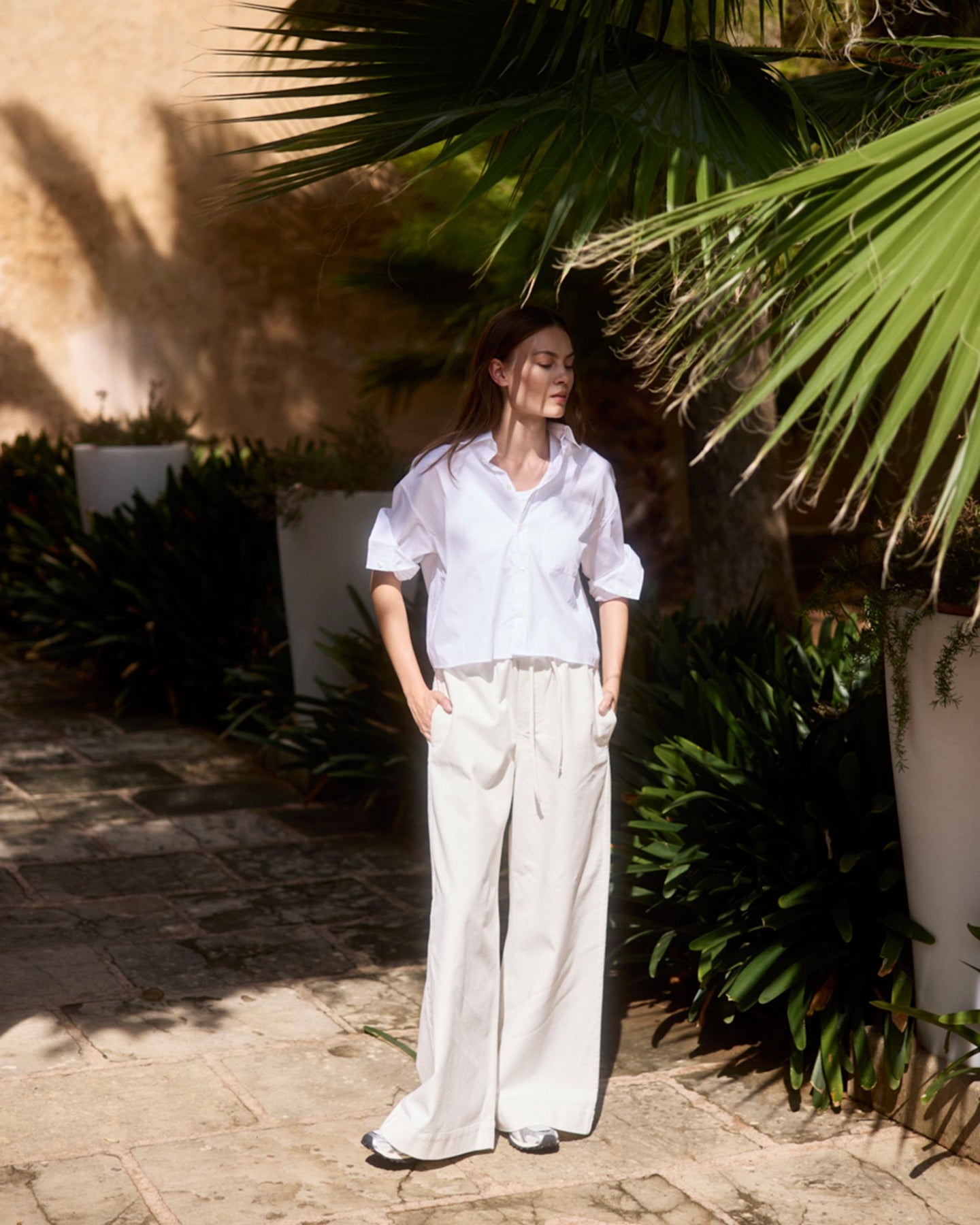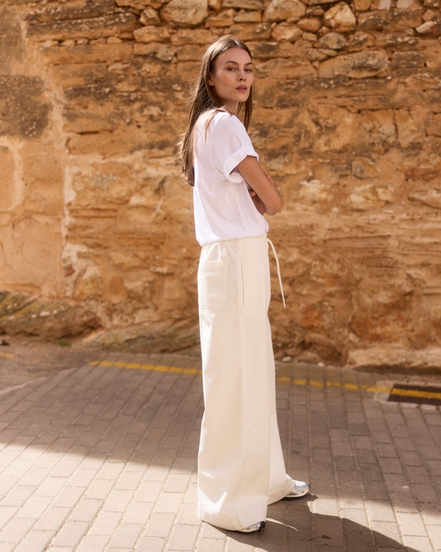 Unsere Offwhite Wide Leg aus Bio-Baumwolle ist ein moderner, unkomplizierter Klassiker.