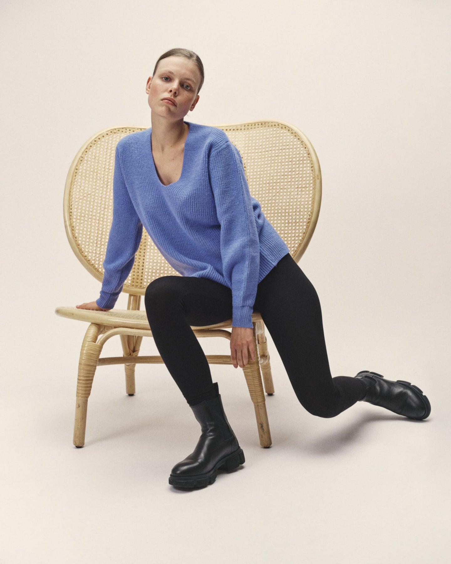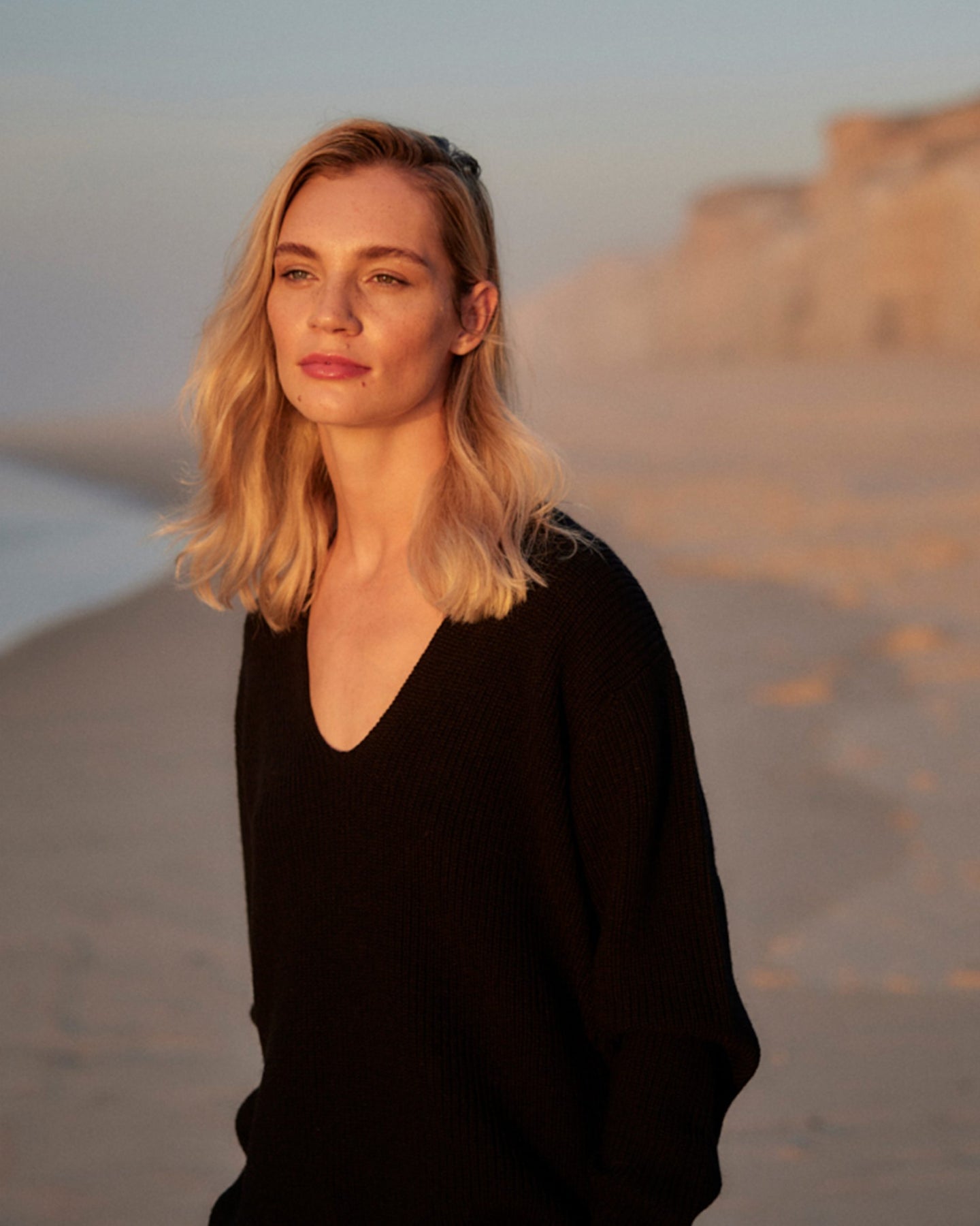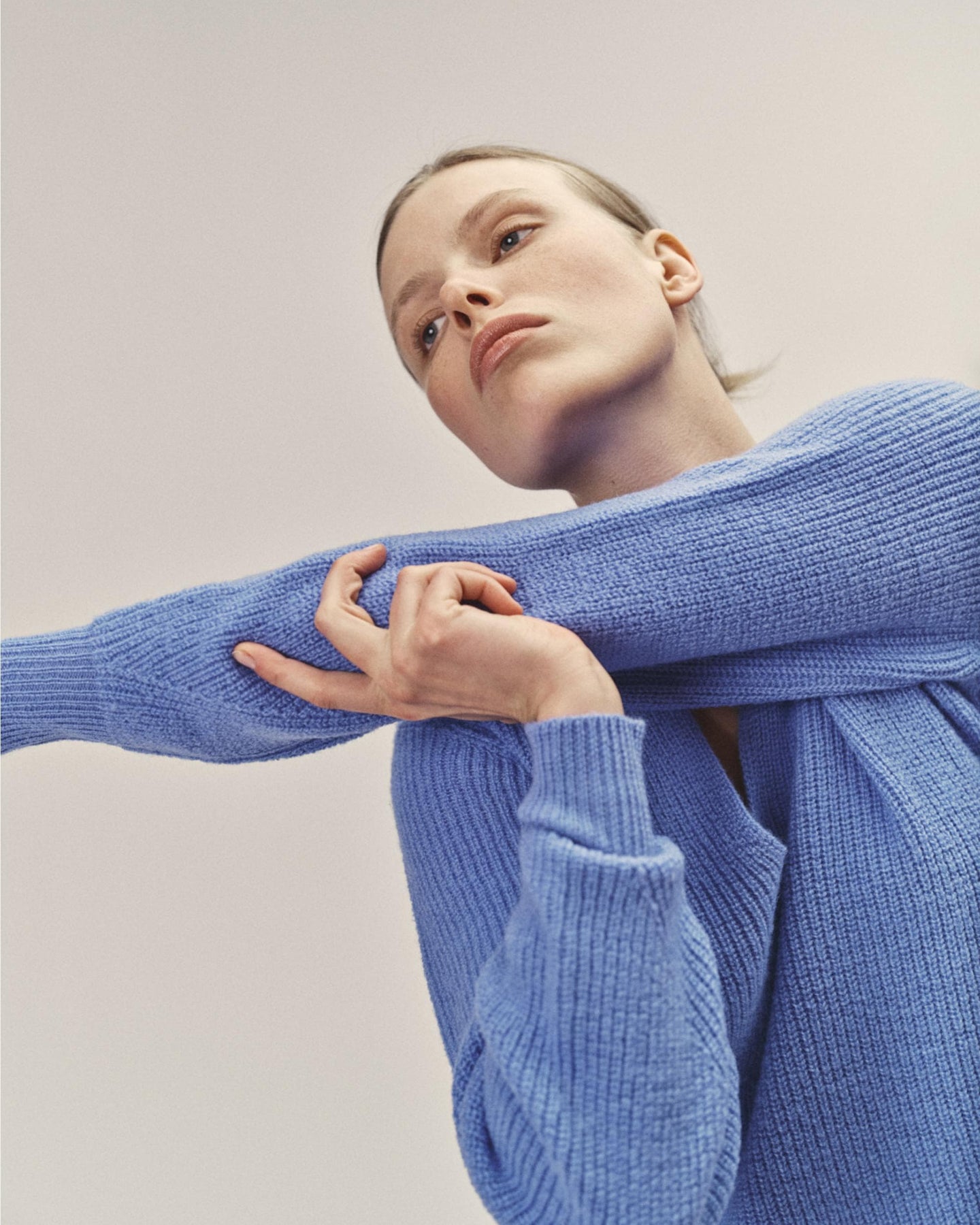 Ein femininer Klassiker, neu interpretiert: Unser V-Neck Strickpullover aus nachhaltiger Merinowolle verbindet Eleganz mit modernem Minimalismus. Der sanft abgerundete V-Ausschnitt schmeichelt der Silhouette und lässt Raum für Layering, während die Rippenstruktur und die feinen Minderungsdetails dem Pullover eine hochwertige, ruhige Struktur verleihen.