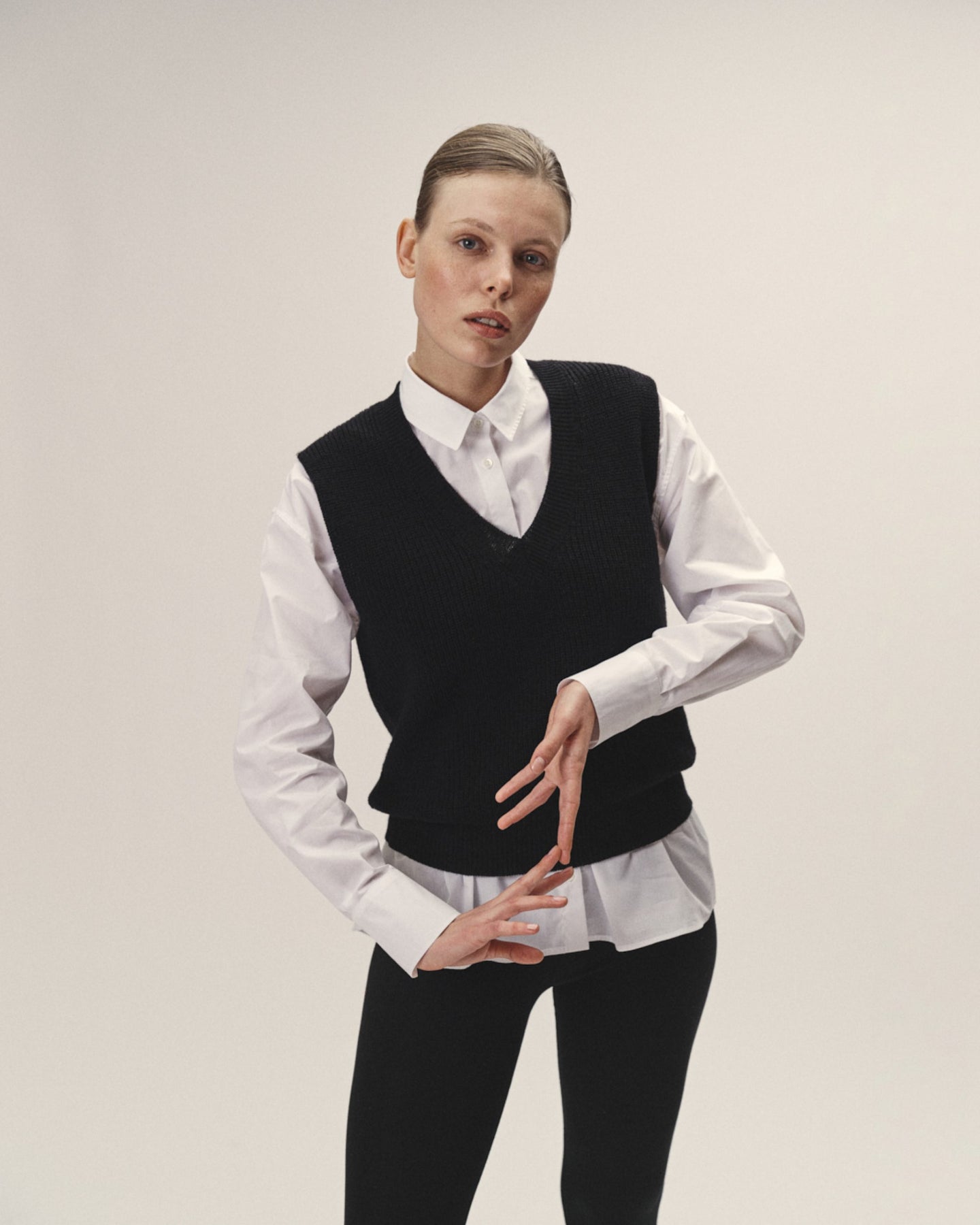 • Tiefes V-Neck – perfekt zum Layern über Bluse, Shirt oder Longsleeve