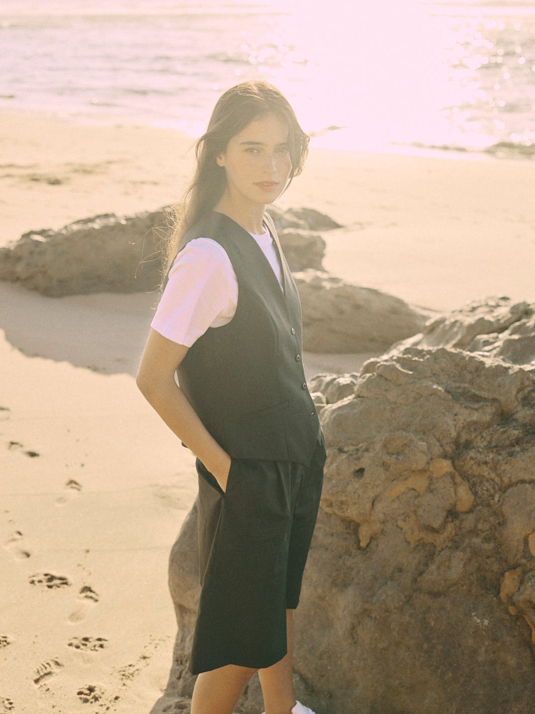 Outfit Ansicht Damen Woll-Bermuda in Schwarz aus nachhaltiger Wolle, made in Portugal von WOTE