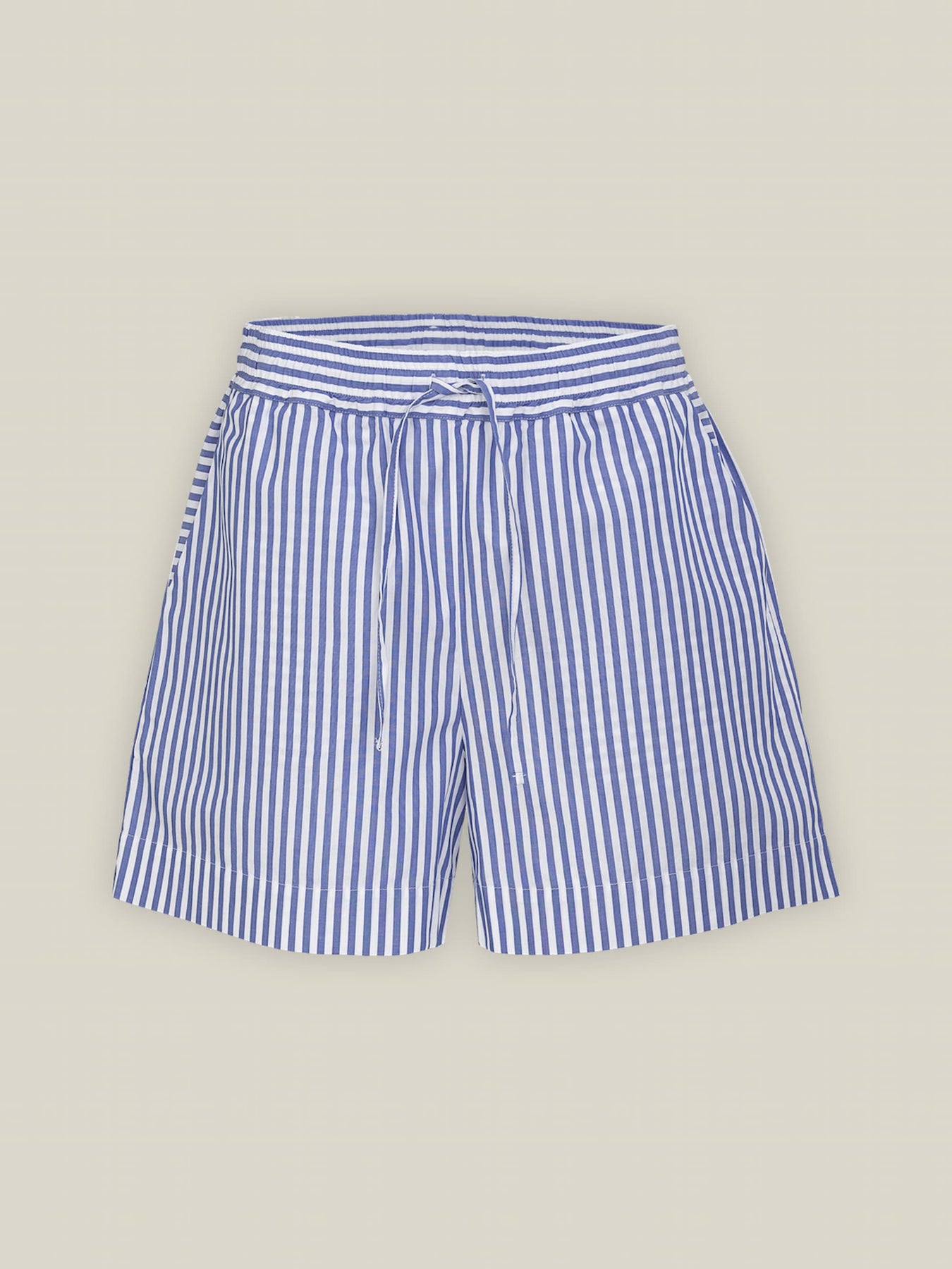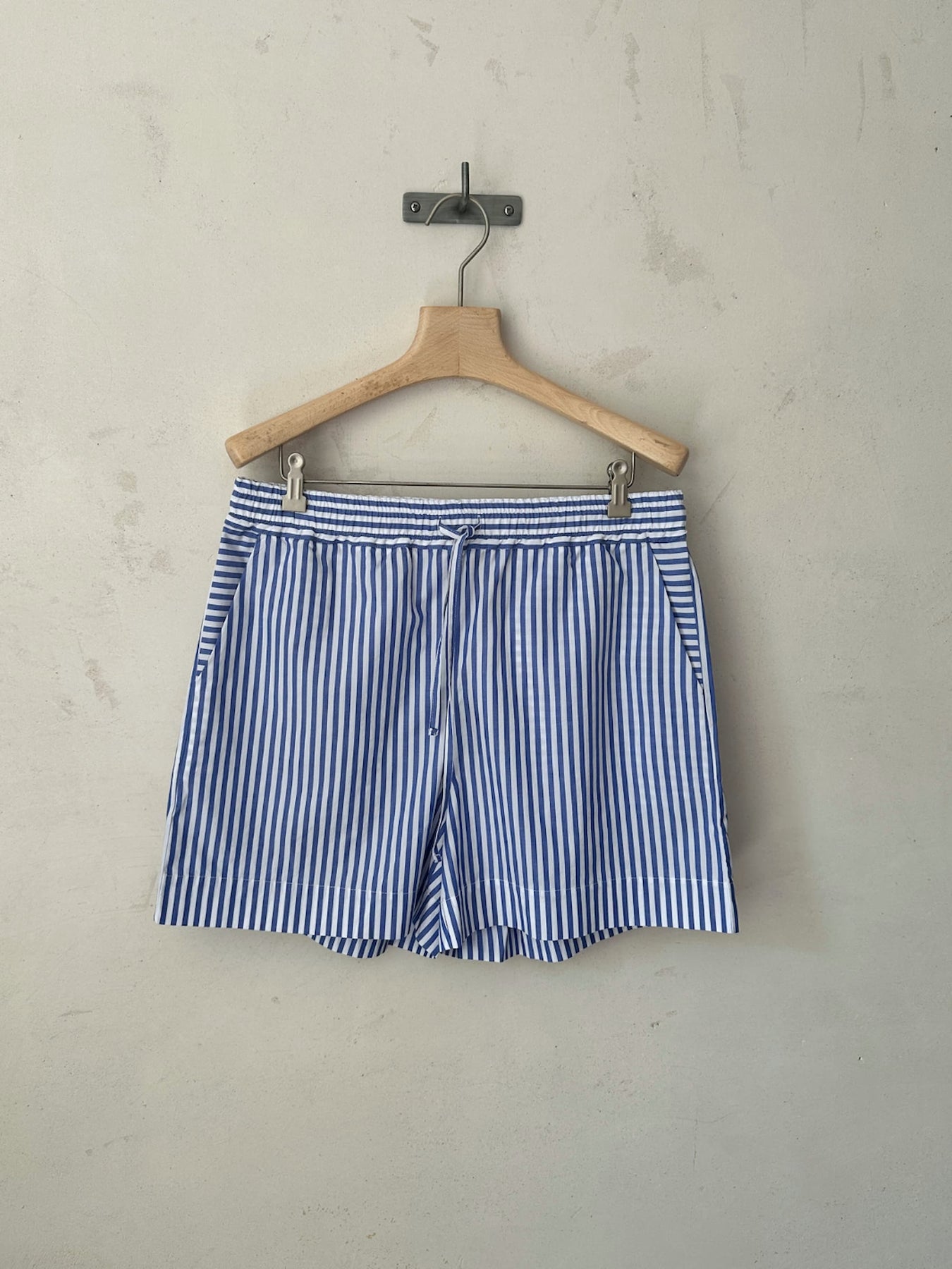 Unsere Streifen Shorts aus 100% Bio-Baumwolle sind ein leichtes, entspanntes Essential für warme Tage. Das feine Popeline-Gewebe aus dem Traditionshaus Somelos sorgt für eine frische, cleane Haptik – ideal für sommerliche Everyday-Looks.