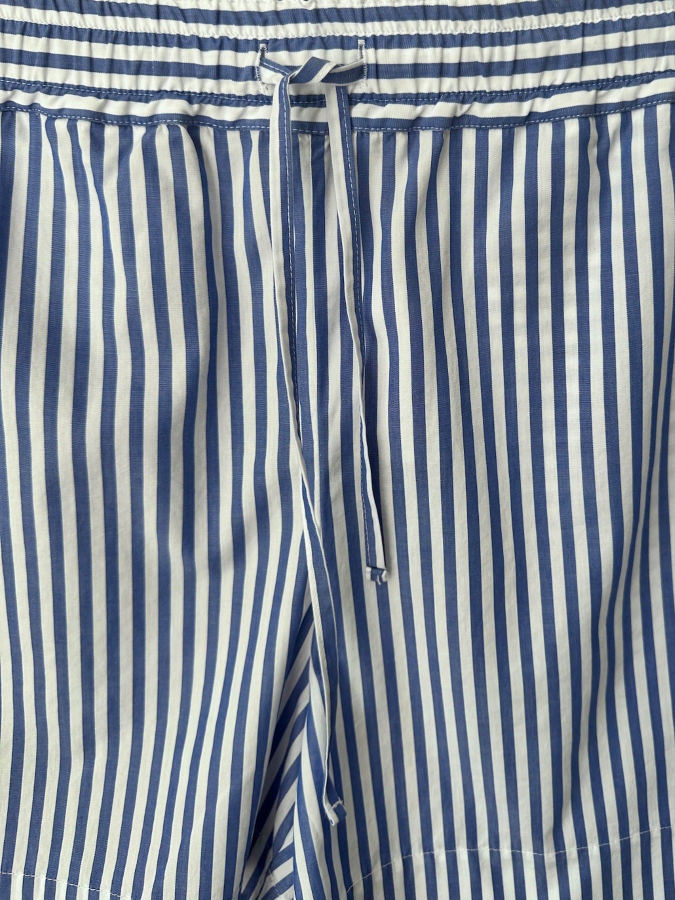 Mit ihrem soften Elastikbund, dem sportlichen Drawstring und der lässigen Beinweite entsteht ein Look, der an modernen Pyjama-Chic erinnert: natürlich, unkompliziert und stilvoll. Perfekt kombinierbar mit weißen Shirts, Tanks oder als vollständiges Set mit unserer gestreiften Oversized Bluse.