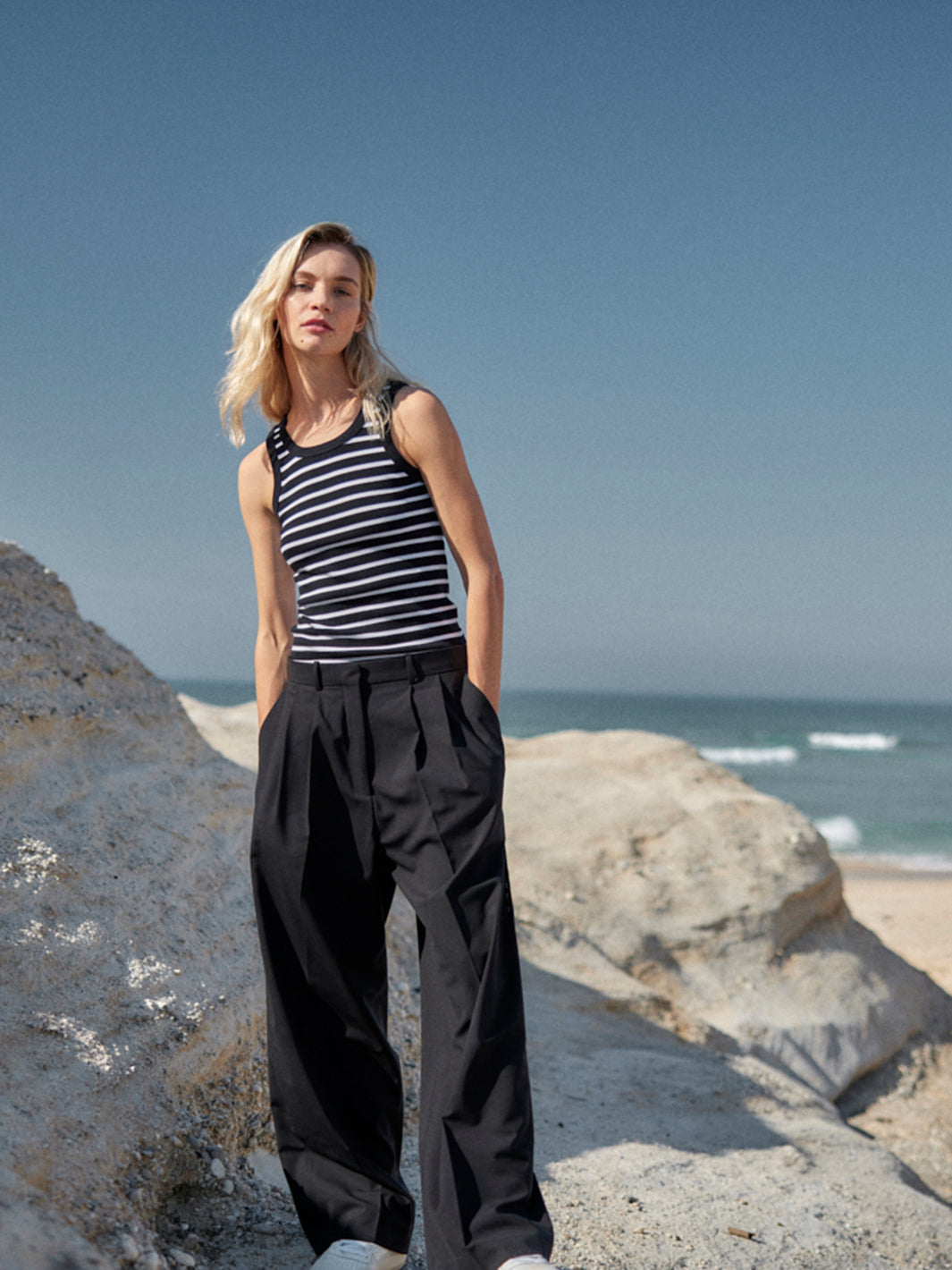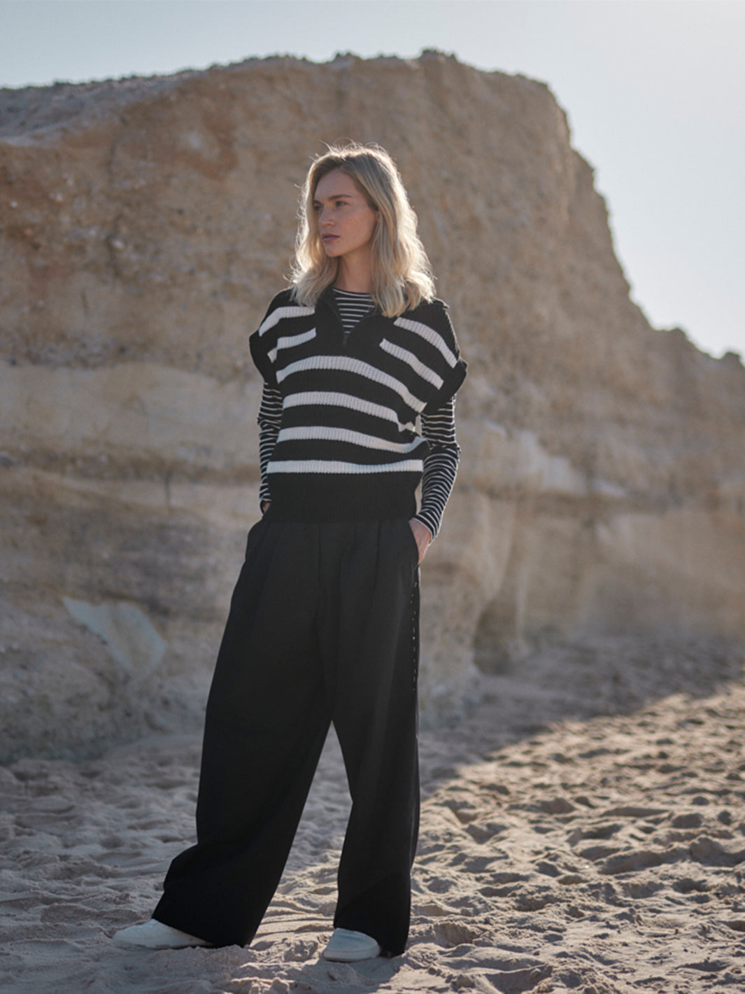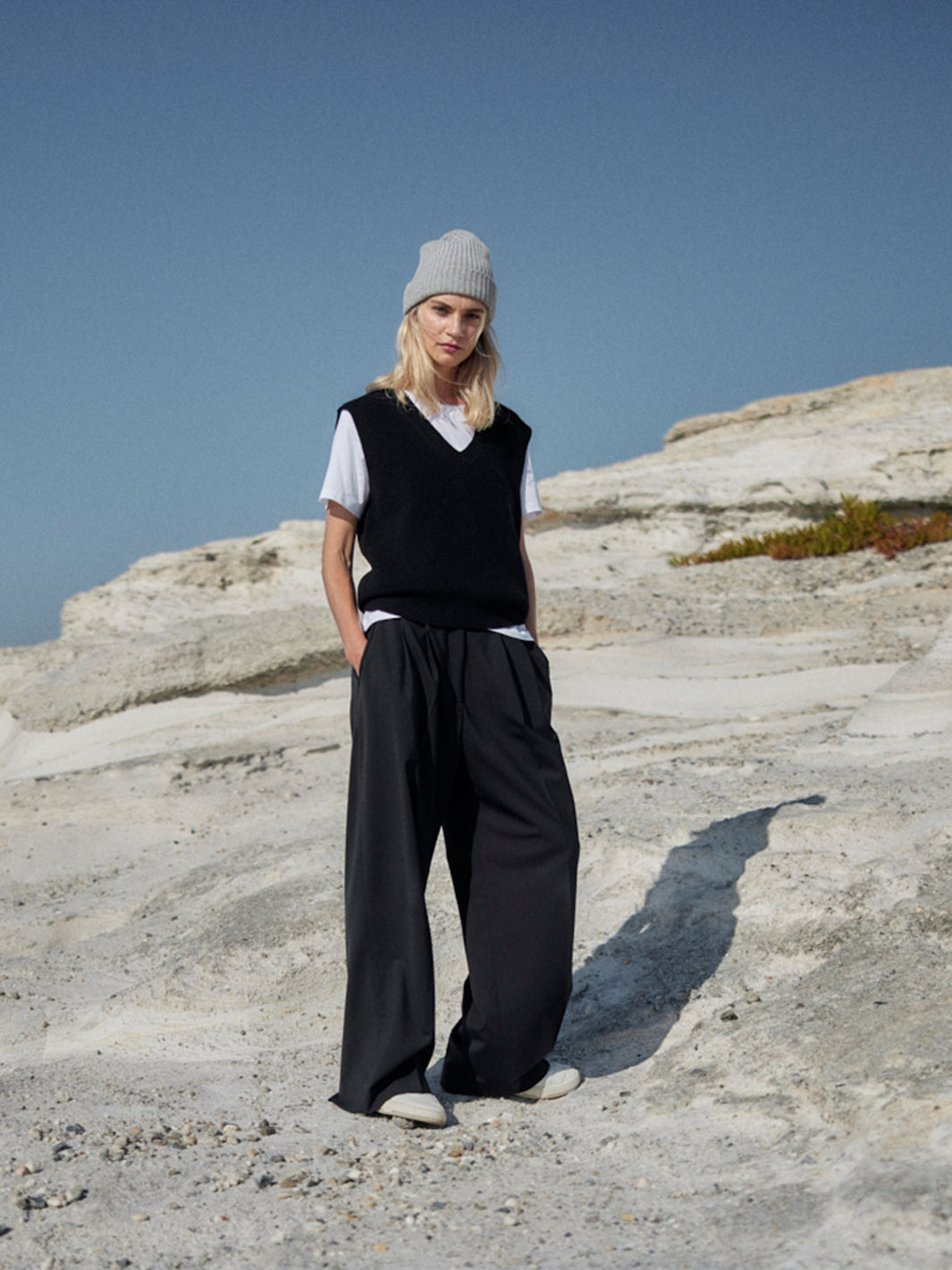 Stylistisch vielseitig: Ob mit cropped Strick, cleanen T-Shirts oder unserem Boyfriend Blazer – diese Marlene Hose ergänzt jedes Outfit deiner Capsule Wardrobe und bringt sofort eine moderne, entspannte Tailoring-Note in deinen Look.