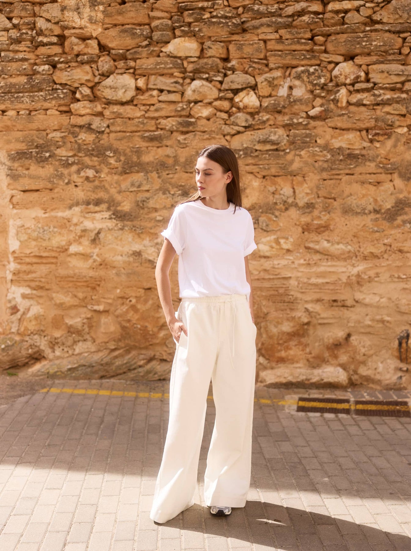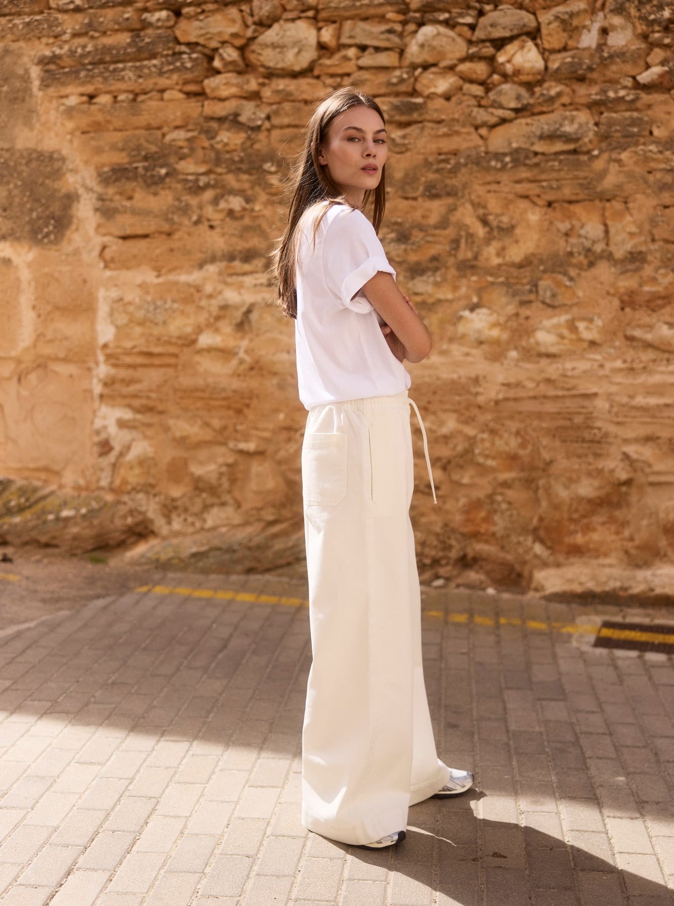Unsere Offwhite Wide Leg aus Bio-Baumwolle ist ein moderner, unkomplizierter Klassiker.