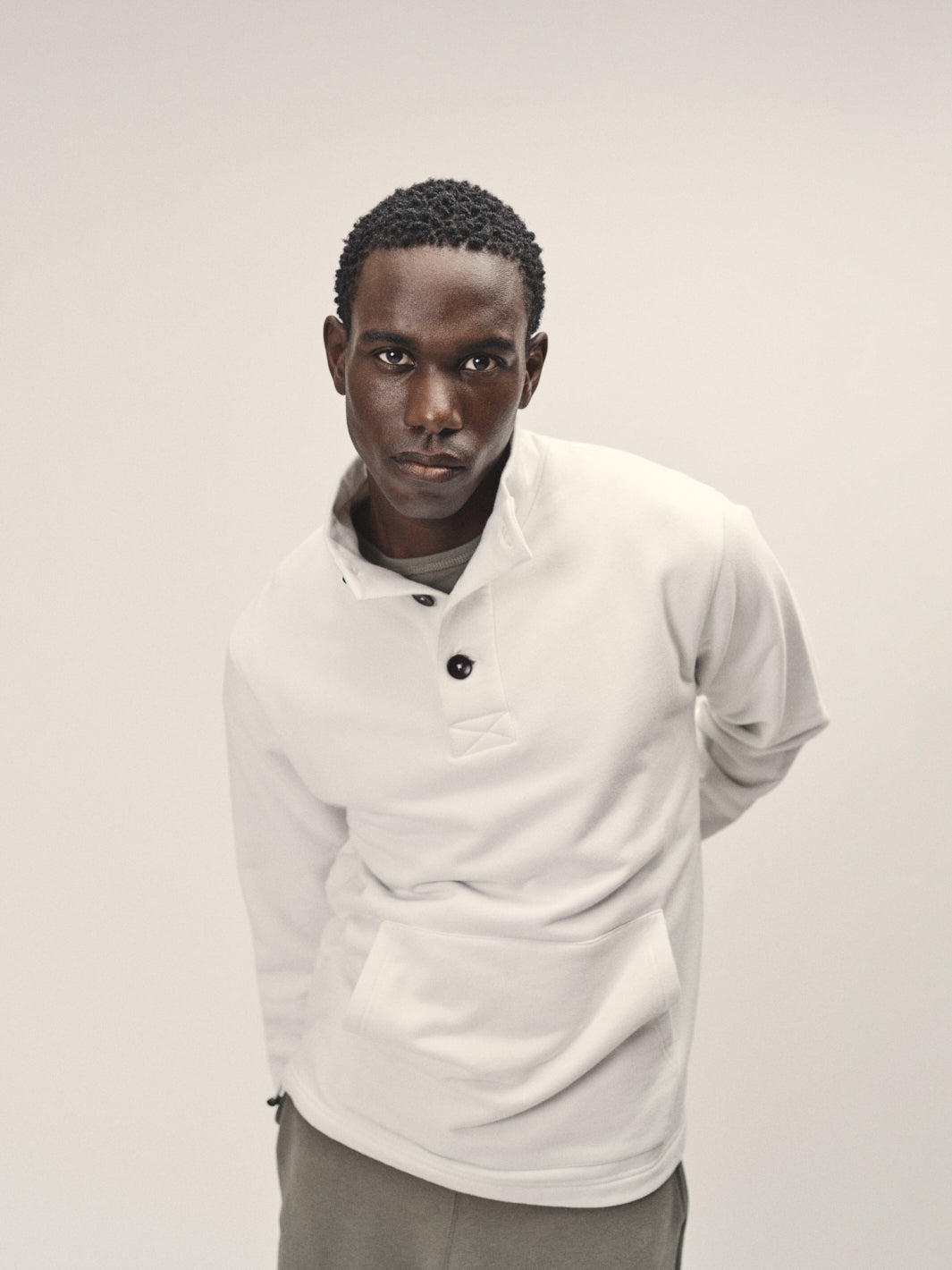 Unser Herren Stehkragen Sweatshirt bringt urbane Lässigkeit mit durchdachten Details zusammen. Der hochwertige Sweatstoff aus 100% Bio-Baumwolle (350g/m²) sorgt für ein angenehmes Tragegefühl - robust, weich, langlebig. Ein minimalistischer Look mit cleverer Funktion: variabler Saum, wärmender Kragen, praktische Kängurutasche. Für Alltag, Übergang, Draußen.