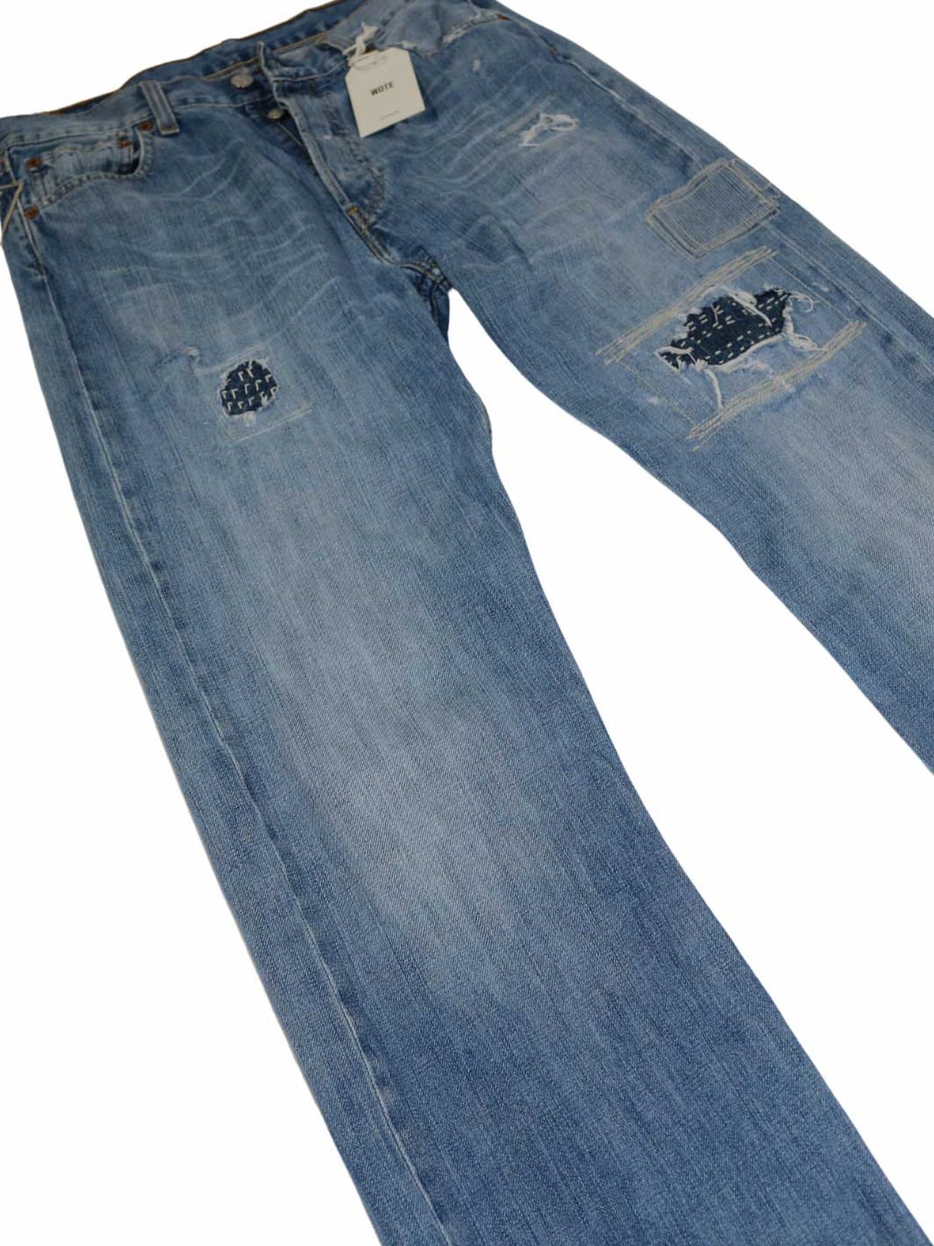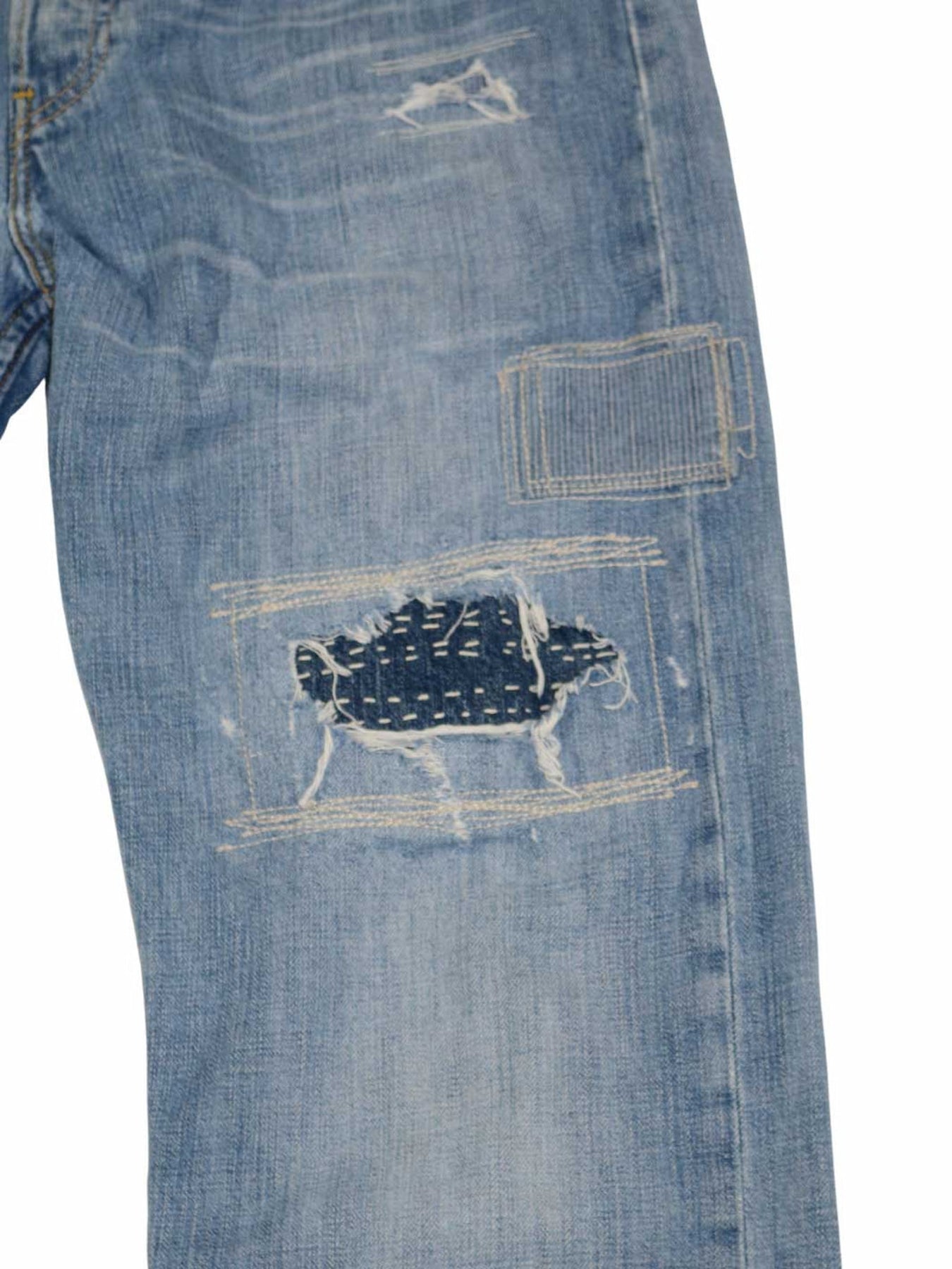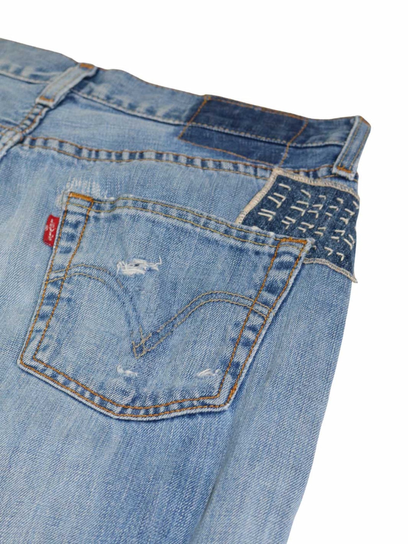 • Second Life Unikat mit handgestitchten Denim-Applikationen