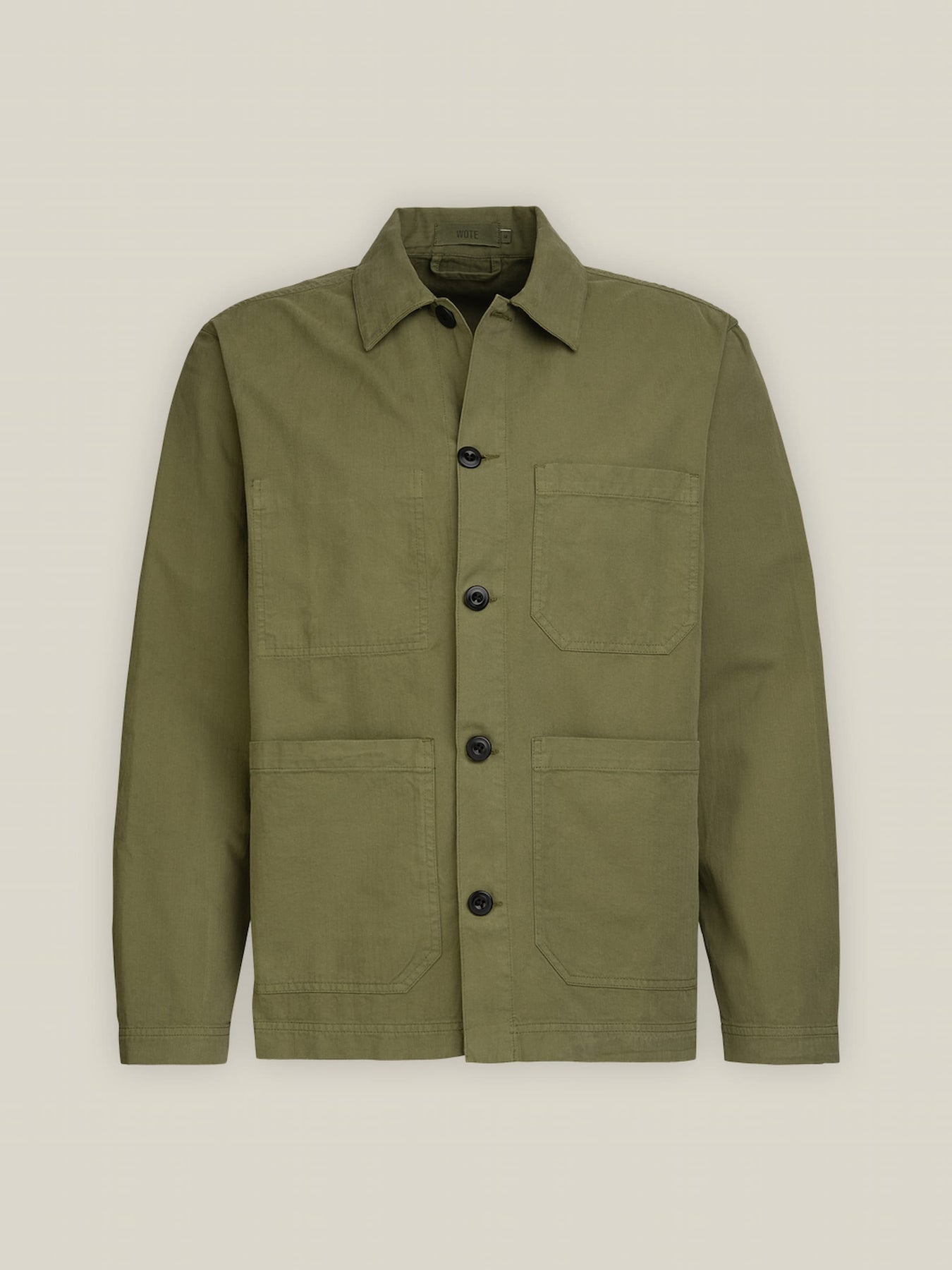 Unser Worker Overshirt in Olive vereint klassische Utility-Ästhetik mit moderner Klarheit.