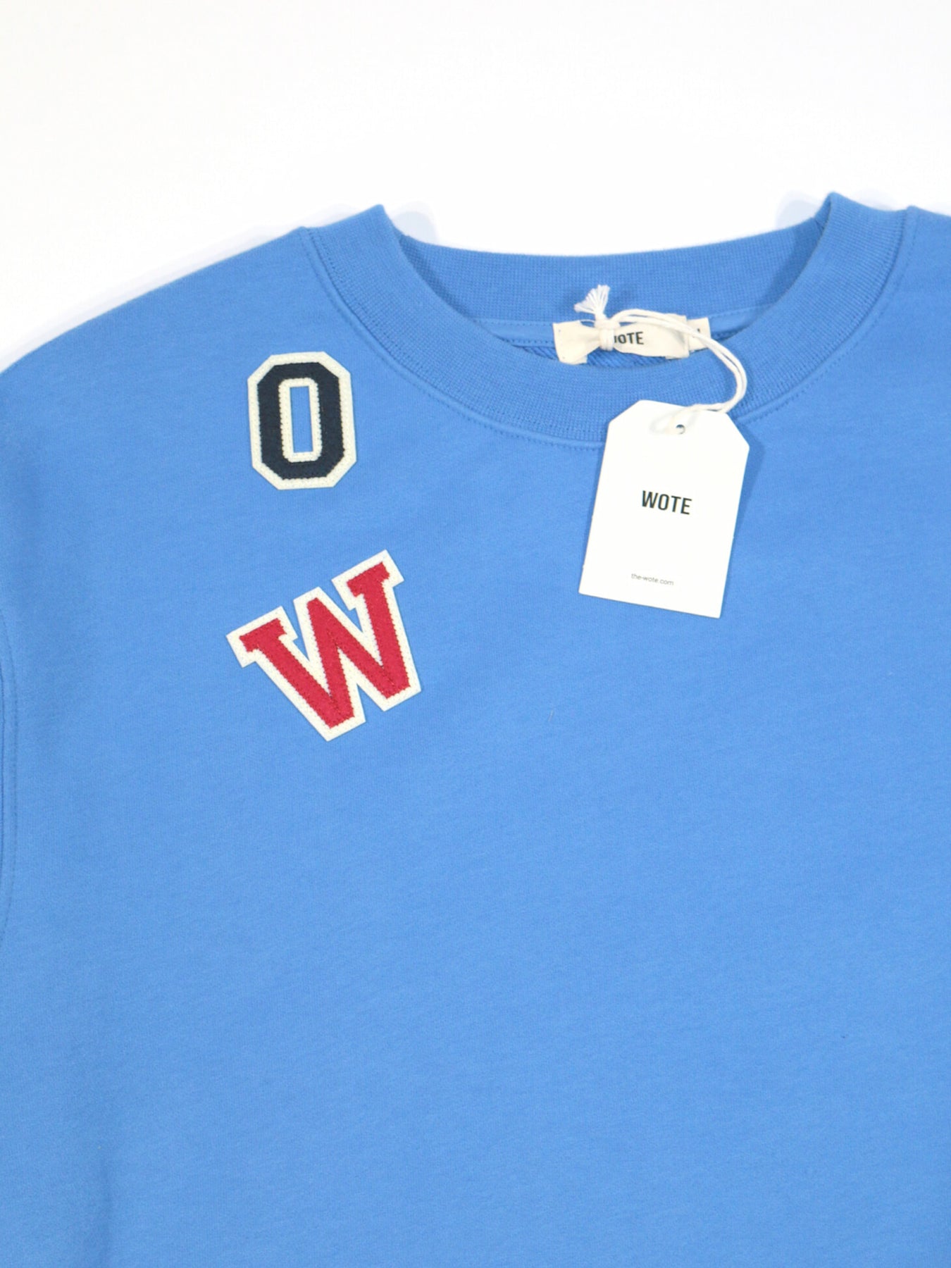 Second Life Damen Sweatshirt in Blau aus Bio Baumwolle mit dezentem WOTE Label – Rückenansicht
